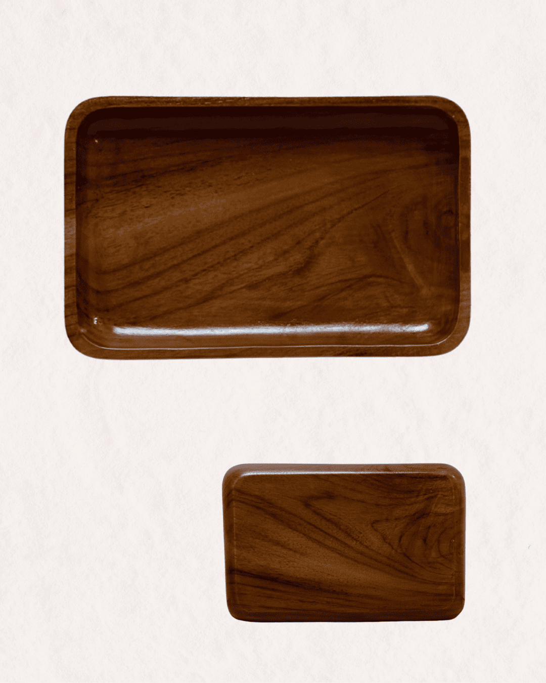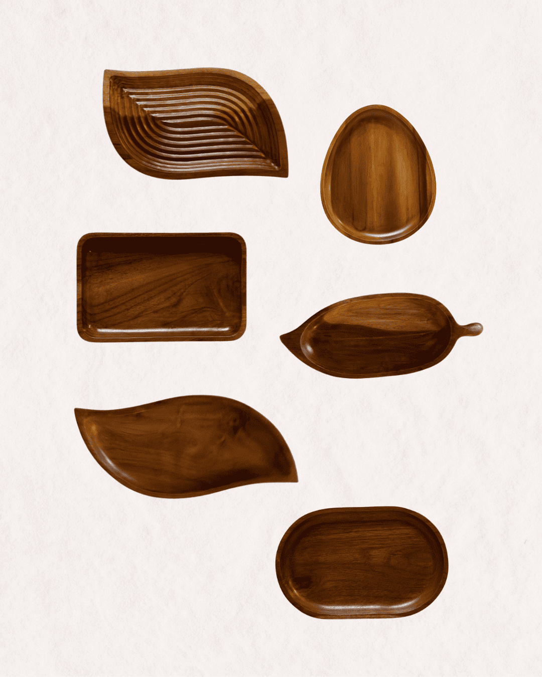 Le teck est un bois particulièrement apprécié pour les objets de cuisine et de décoration. Ses qualités en font un matériau idéal pour un plat de présentation :